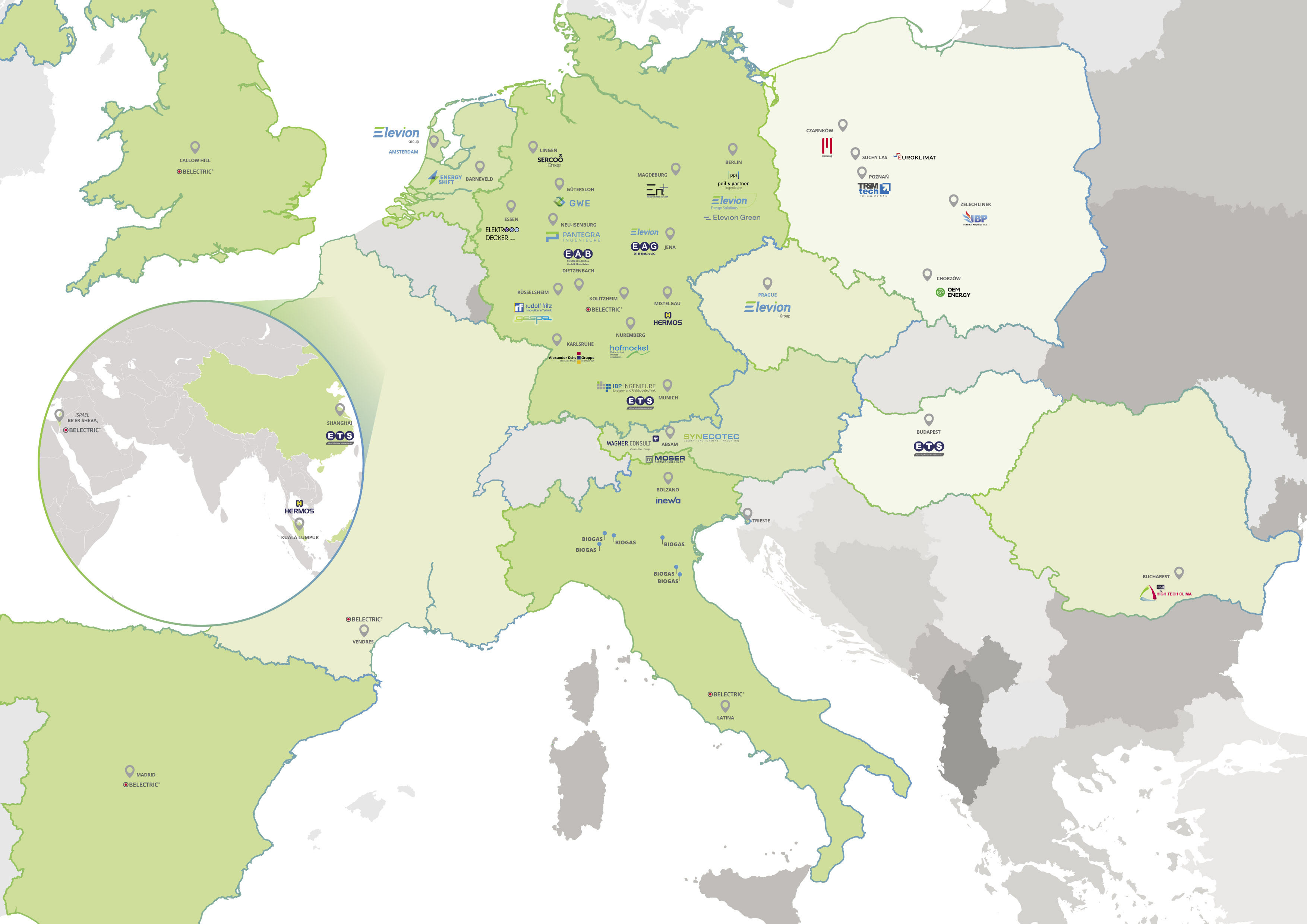 Die Elevion Group ist in über 13 europäischen Märkten, mit mehr als 80 hochspezialisierten, unabhängigen Unternehmen tätig und verfügt dabei über die Finanzkraft eines internationalen Konzerns. Mit der einzigartigen Struktur und dem ambitionierten Pioniergeist von Elevion können wir Kompetenzen problemlos über den ganzen Projektumfang hinweg, für verschiedenste Projektgrößen und eine Vielzahl erforderlicher Spezial-Kenntnisse skalieren.