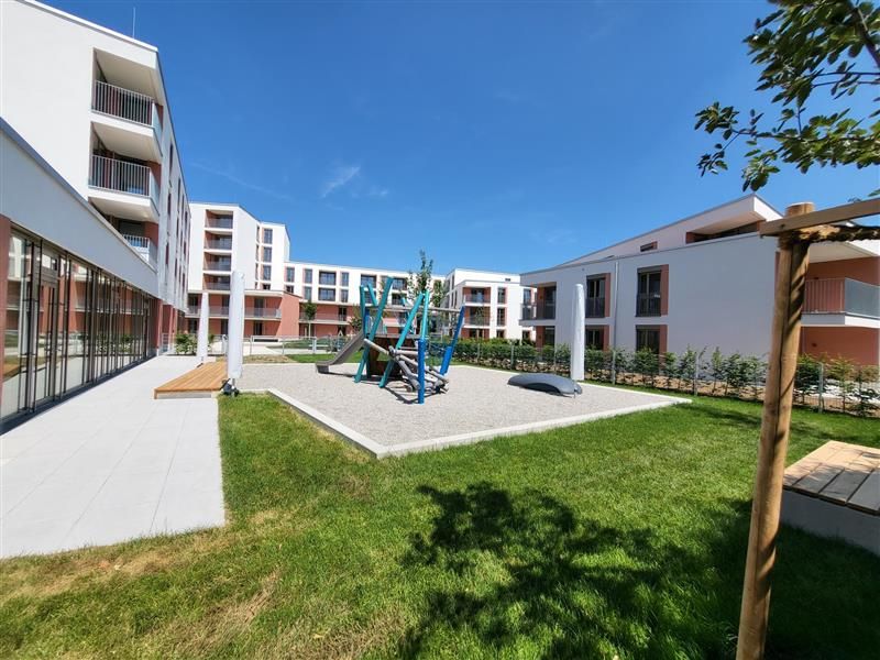 Neubau einer Wohnanlage mit 3 Gebäudekomplexen, max. 5 Obergeschossen, 59 Wohneinheiten und 20 Senioren-Appartements, Pflegebad, Mittagsbetreuung, Bürgercafe, gemeinsame Tiefgarage